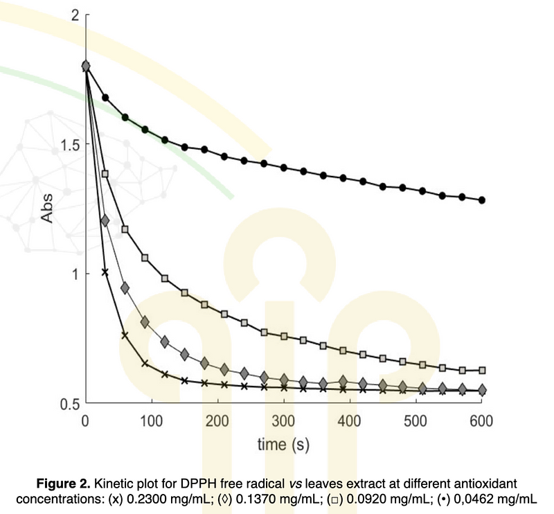 Talavera, Geniel, et al. “Kinetics of the Reaction between Moringa Oleifera Leaf Extracts and 2,2-Diphenyl-1-Picrylhydrazyl (DPPH) Free Radical.” Nexo, vol. 35, no. 5, 2022, pp. 17–25, doi:10.13140/RG.2.2.20777.31847.
